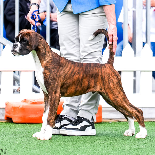 To top of the 2024 year with a bang Marcus won BEST IN SHOW – Boxer Association of Victoria Championship Show 2024 under Breed Specialist Jessica Brzezinski Von JessBox Boxers, Serbia. Marcus won Reserve Challenge Dog the year before under Mr Shharat Sharma (India) following on from his Best Junior in Show in 2022 under Ms Lynn Mair (UK) Glenauld Boxers.